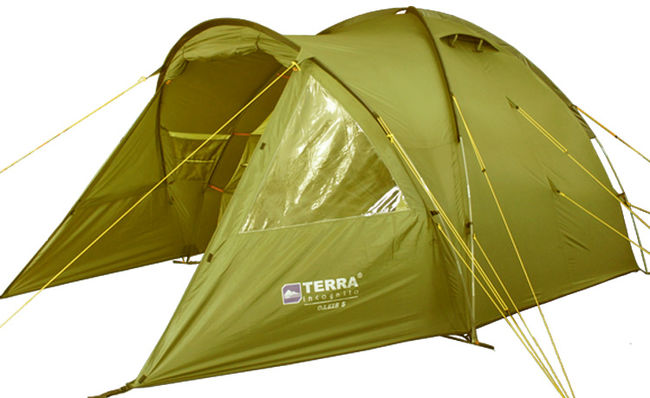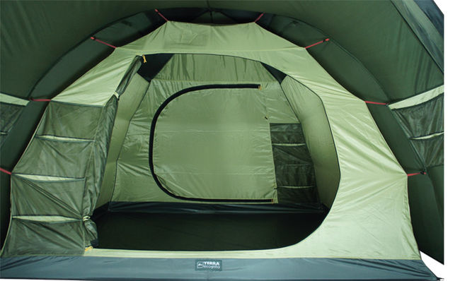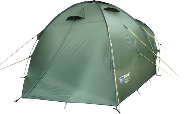 Terra Incognita Oazis 5 - Висококласний сімейний п'ятимісний намет для тривалого відпочинку, трисезонного призначення. Просторий і високий тамбур ідеально підходить для розміщення багажу чи організації кемпінгової кухні. Конструкція дозволяє використовувати тент без спального приміщення.Два входи дають можливість прямого доступу в спальню і забезпечують ідеальну вентиляцію.