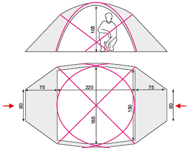 Регулювання вентиляції внутрішнього намету за допомогою блискавки і захисна спідниця дозволяють використовувати намет протягом усього року. Намет може використовуватися без спального приміщення як їдальня, склад і т. і. Захисна "спідниця” (можна приховати) перешкоджає можливому попаданню пилу, снігу.
