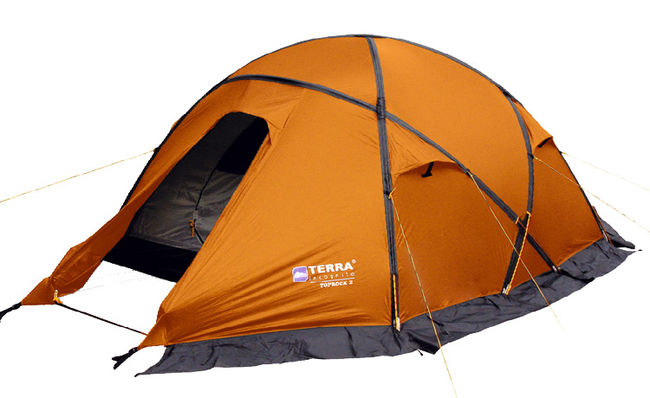 Terra Incognita Toprock 2 Orange - Всесезонний 2/3-х місний намет. Стійка конструкція з 4-х зовнішніх дуг ідеально підходить для екстремальних походів. Великі та зручні тамбура, в яких можна розмістити речі і спорядження. Два входи дають можливість прямого доступу в спальню і забезпечують ідеальну вентиляцію.