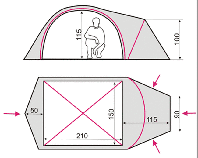 Два входи дають можливість прямого доступу в спальню і забезпечують ідеальну вентиляцію. Установка намету швидка і проста.