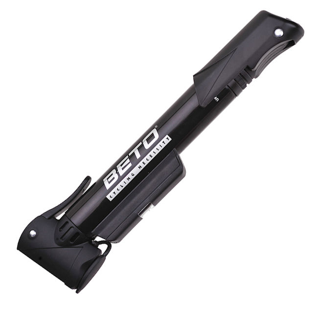 Насос пластиковий з манометром і Т-подібною пластиковою ручкою. Перемикач: високий тиск або великий обсяг. Подвійна головка для двох типів ніпеля: Presta, Schrader. Максимальний тиск 100 PSI.Телескопічний механізм.У комплекті: кріплення.