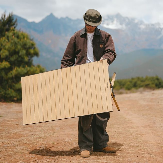 Naturehike CNK2300JU010 M Beige — За допомогою складаного стола можна облаштувати місце для відпочинку під час пікніка, кемпінгу або риболовлі. Модель виготовлена з алюмінієвого сплаву 6063. Це нержавіючий метал, який підвищує зносостійкість конструкції, а також робить її на 40% легшою, ніж аналогічні вироби з натуральної деревини.