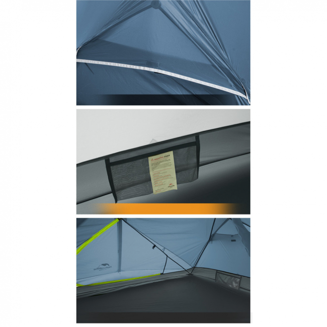 Конструкція намету Naturehike Mongar складається з 2 окремих частин: внутрішнього намету з сіткою та зовнішнього тенту, стійкого до дощу, вітру та сонця. У теплу пору року можна використовувати лише внутрішню частину — спати під зоряним небом та насолоджуватися прохолодою. Тент за необхідності перетворюється на окремий навіс, коли потрібно організувати тінь або укриття для відпочинку.