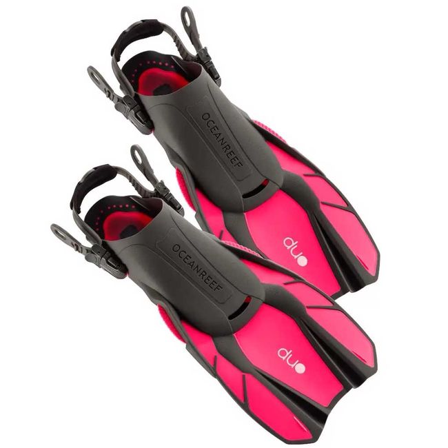 Ocean Reef Duo Fins Pink — Отримайте максимум задоволення від ласт, що легко регулюються. Відмінно підходять як для початківців, так і досвідчених любителів підводного плавання. Duo Fins - максимальний комфорт та легка вага для легкої упаковки та подорожей.