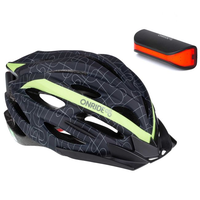 Велошолом OnRide Grip Black Green + Мигалка OnRide Row