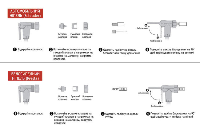 кількість рухів. В комплекті кріплення до рами велосипеда. Насос