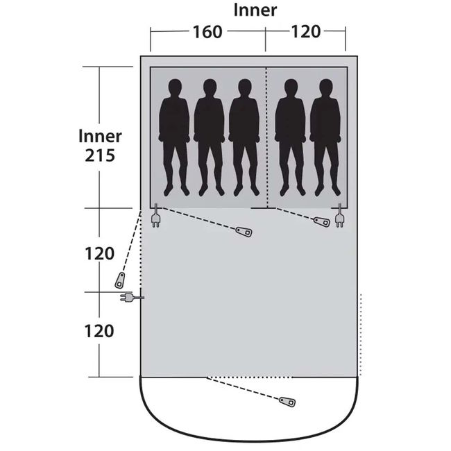 - Sleep Comfort 4 People — стандартний розмір спального місця становить 60 см на людину. У разі використання надувних матраців для комфортного сну в наметі можуть розміститися 4 особи.