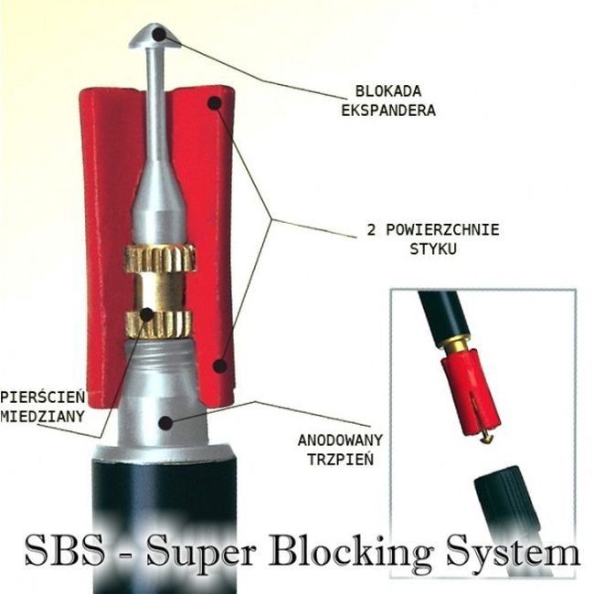 Завдяки SBS системі, регулювання довжини телескопічних палиць дуже швидке і безпечне. Ця унікальна подвійна цанга (пружна розрізана втулка) зроблена з бронзи і тестована при температурі -50 градусів) забезпечує надійність і довговічність. Зі спеціальним алюмінієвим обмежувачем ви не зможете втратити цангу під час регулювання довжини.