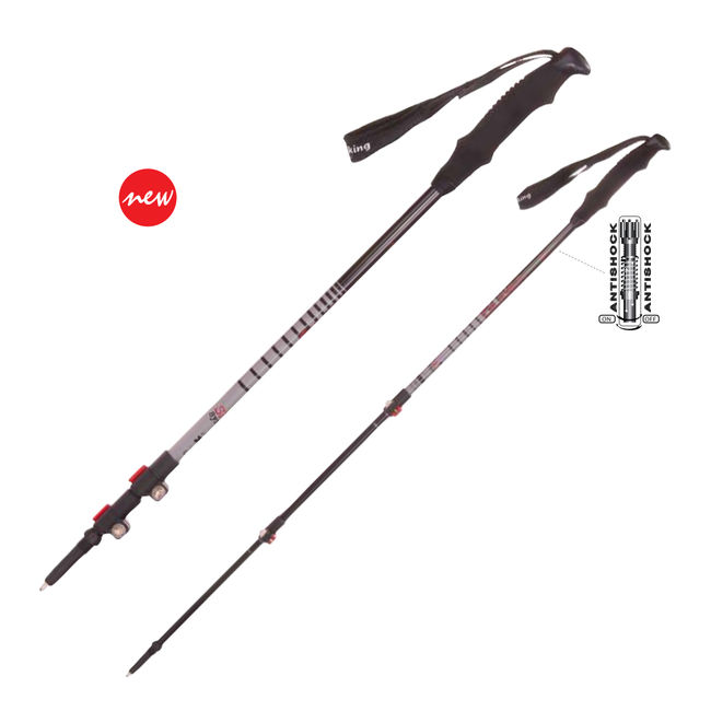 Трекінгові палки Viking Tek виконані в спортивному стилі, за допомогою системи Antishock ви відчуєте комфорт під час руху. Контурні ручки із піни забезпечують зручне тримання палок, та максимальний захист ручки від вологи. Система блокування дає можливість швидко регулювати і фіксувати секції палиць.