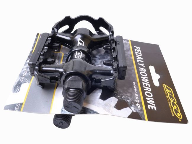 Корпус алюміній зі спеціальними виступами для кращої фіксації ноги, оснащені світло відбивачами, кулькові підшипники.