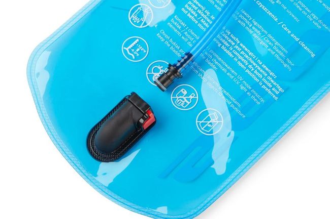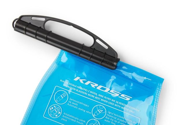 Kross Hydra 2.0 питна система призначена для постачання води зі спеціального відсіку рюкзака, за допомогою трубки. Виготовлена з харчового пластику PEVA (етилен полімер). Система закривається ковзаючим затискачем стримером.
