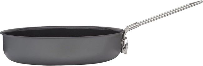 Міцна сковорідка з твердого анодованого алюмінію має керамічну антипригарну поверхню, яка пропонує легке чищення в будь-якому середовищі. Рукоятка з нержавіючої сталі фіксується під час користування, а потім обертається під сковороду для компактності. Поставляється з бавовняним чохлом для зберігання.