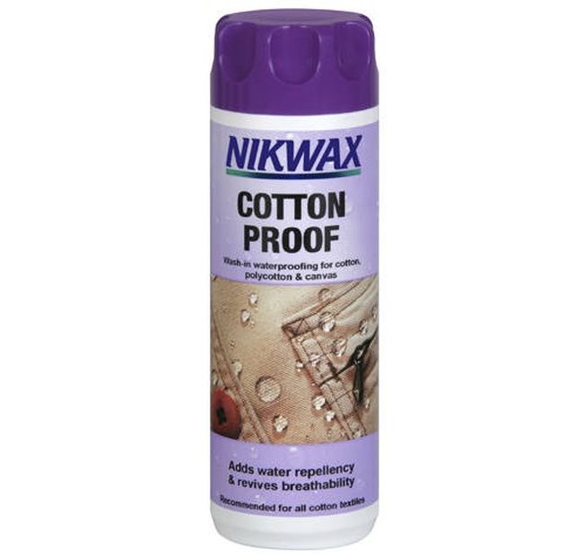 Пропитка Nikwax Cotton Proof водостійкість і UV захист для бавовни надає водовідштовхувальні властивості брезентовим і бавовняному одягу. Додає водовідштовхувальні властивості. Скорочує поглинання води і мінімізує збільшення ваги. Високий вміст активних компонентів засобу значно підвищує ефективність одягу з матеріалів, що забезпечують в звичайних умовах досить скромний захист. Рекомендується для всіх бавовняних і змішаних тканин. Не підходить для гуми і тканин, що мають покриття з полівінілхлориду, тканин з мембранами.