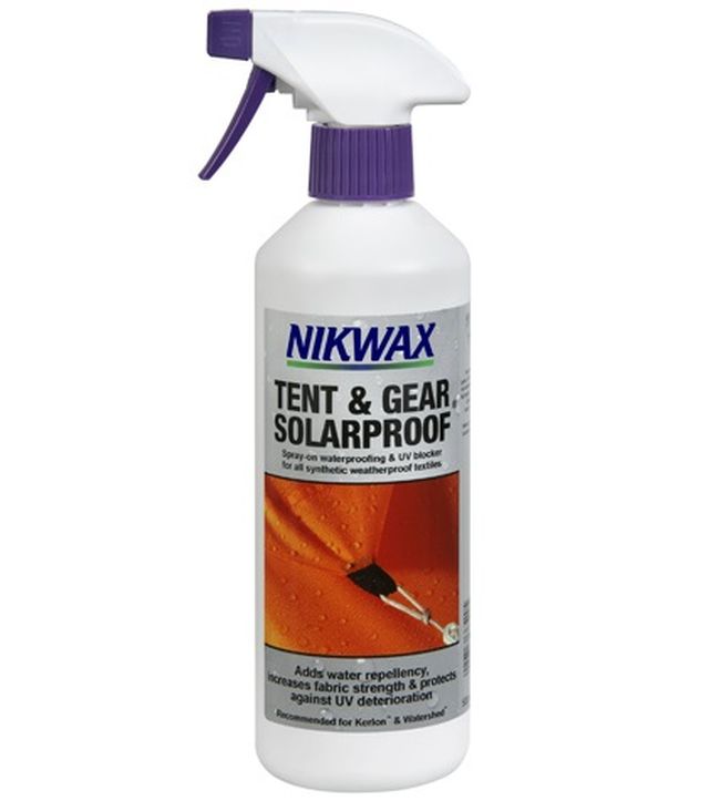 Tent & Gear SolarProof наноситься для відновлення водовідштовхувальних властивостей тканин, що мають поліуретанове, неопренове або ПХВ покриття. Може використовуватися для нанесення на намети, тканинне взуття, штормові костюми, вітрила, гамаші, чохли для відео -та фотокамер, рюкзаки.