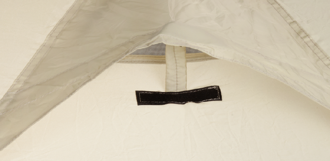- Дно намету виготовлено з цупкого довговічного матеріалу, з рівнем водонепроникності 10 000 мм водяного стовпа. Кути в місцях кріплення петель посилені додатковим шаром тканини. Всі шви дна проклеєні PU-стрічкою