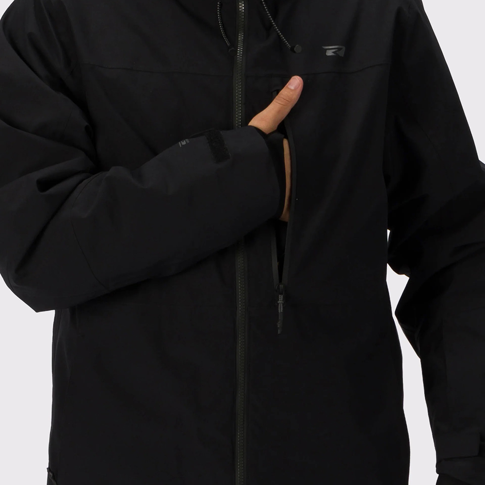 Rehall Brasko – чоловіча зимова куртка для катання на лижах і сноуборді. Мембрана ReTech Dryshell з показниками водонепроникності 20 000 мм і паропроникності 20 000 г/кв.м/24 год забезпечує надійний захист від снігу, вітру і дощу, зберігаючи сухість і комфорт навіть у складних погодних умовах. Вентиляційні блискавки в області пахв допомагають підтримувати оптимальну температуру при високій активності. Регульований капюшон, снігозахисна спідниця і манжети з лайкри запобігають потраплянню снігу всередину. Для зручності передбачена кишеня для скіпасу на рукаві та інші функціональні кишені для дрібниць. Прямий крій і лаконічний дизайн забезпечують комфортну посадку і універсальний зовнішній вигляд.