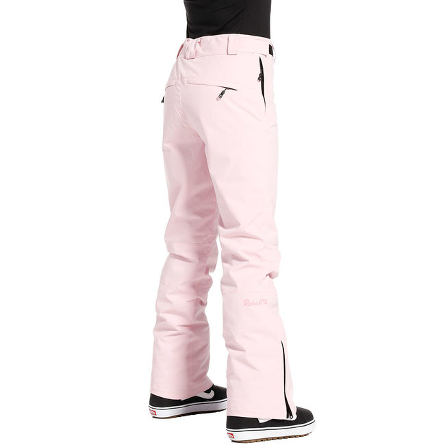 Rehall Denny W – теплі жіночі штани для гірськолижного спорту. Поліпшені характеристики мембрани Re-Tech з більш високими показниками водонепроникності чудово захищають від холодного вітру і снігу. Крій виконаний з урахуванням особливостей жіночої постаті. Висока посадка штанів надійно захищає поперек від холоду. Практичні кишені на блискавках допоможуть розмістити необхідні на схилі або поза його персональні речі. Еластична тканина тягнеться у двох напрямках та гарантує свободу рухів. Артикуляційний крій штанів забезпечує комфорт за рахунок попереднього вигину області колін. Низ штанин забезпечений бахилами, які захищають від потрапляння снігу всередину та додатково утримують тепло.