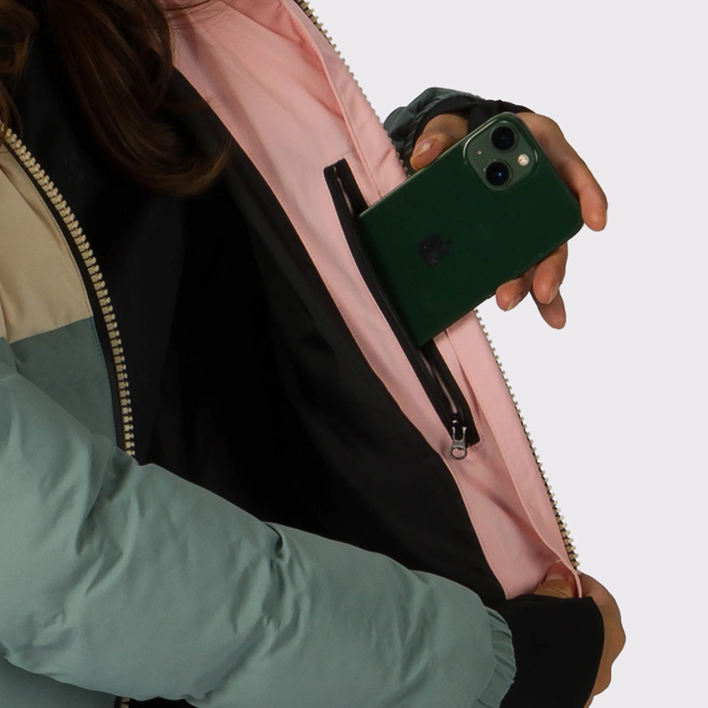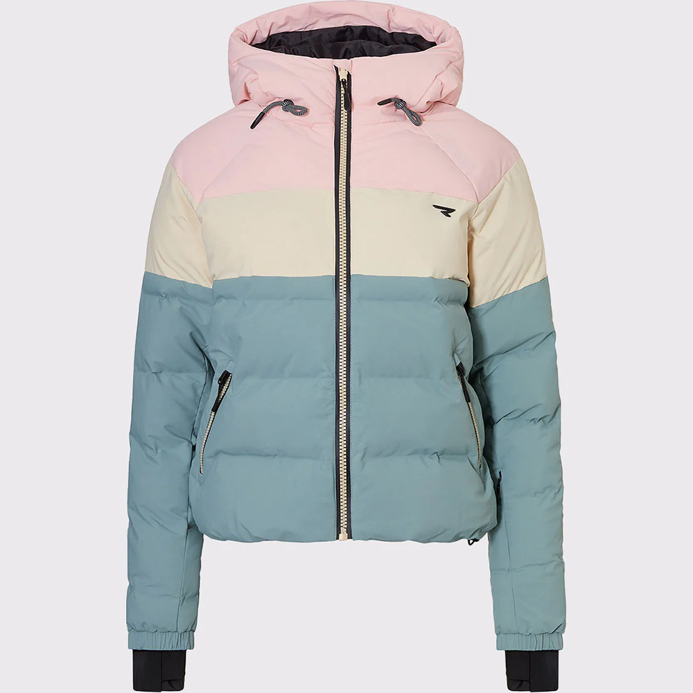 Rehall Nady W – жіноча укорочена куртка для зимових видів спорту та активного відпочинку. Мембрана ReTech Dryshell ефективно захищає від опадів і вітру, а утеплювач щільністю 380 г/кв.м зберігає тепло в холодну погоду. Снігозахисна спідниця, регульований капюшон і еластичні манжети з лайкри забезпечують додатковий захист від холоду і попадання снігу. Куртка поєднує функціональність і стиль, підходить як для катання на лижах і сноуборді, так і для прогулянок взимку.