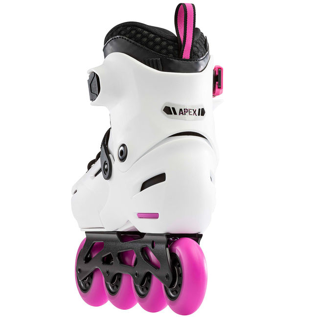 Rollerblade Apex – високопродуктивні міські та фрістайлові ролики для дітей та підлітків. Регульований в межах 4 розмірів черевик дозволяє використовувати ролики протягом кількох років. Дихаючий лайнер Premium Junior з додатковим ущільненням та амортизацією під п'ятою захищає стопу при твердих приземленнях. Литий каф оснащений вентиляцією та знімними слайдерами, відмінно фіксує ногу в черевику. Алюмінієва рама підвищує ефективність за рахунок більшої передачі енергії та довговічності. Регульоване кріплення рами дозволяє налаштувати ролики ідеально під себе. Колеса з жорсткістю 80А та підшипниками SG7 забезпечують стабільність, зчеплення та швидкість. Гальмо входить у стандартну комплектацію.