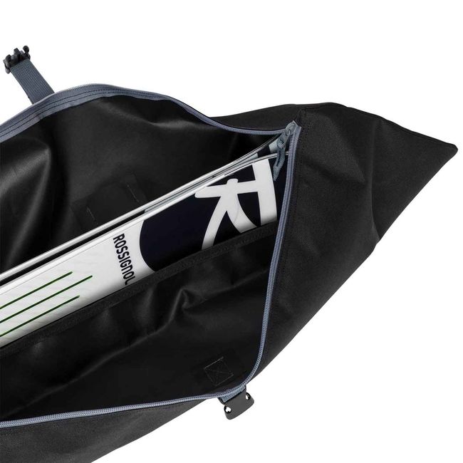 Rossignol Basic Ski Bag 1P 210 — Надміцний чохол для однієї пари гірських лиж або двох пар бігових. Зроблений з високоміцного поліестрового матеріалу. Блискавка по всій довжині. Верхня частина чохла складається і застібається на кліпсу по довжині лиж. Максимально допустима ростовка лиж до 210 см.