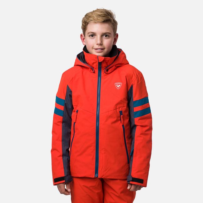 Rossignol Boy Ski Jkt Lava Orange Дитяча куртка для зимових видів спорту. Стильна і технологічна куртка для юних підкорювачів вершин. Топова позиція колекції Performance Ski в сегменті «ціна-якість».