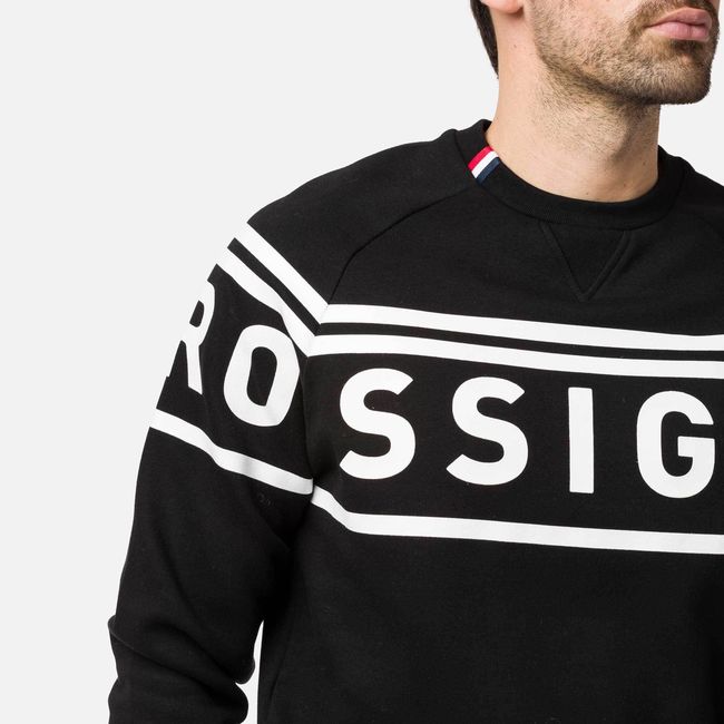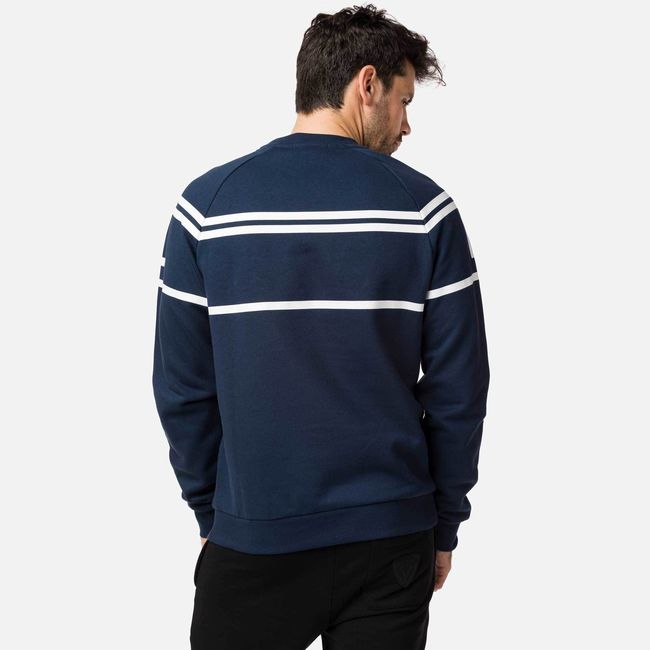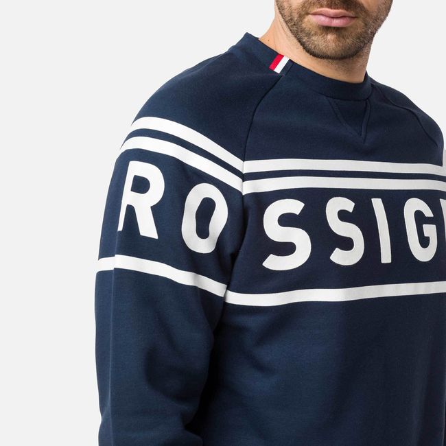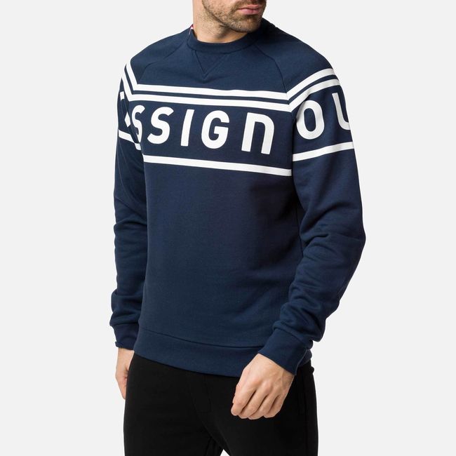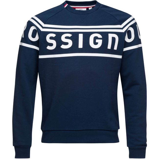 Rossignol Droite RN Dark Navy - Чоловічий светер з круглим вирізом поєднує в собі традиційний дизайн Rossignol з повсякденним міським стилем. Товстий бавовняний светр м'який і дихаючий для легкого використання. Смілива графіка Rossignol ділить вашу любов до катання на лижах, а фірмові кольори надають йому французький шик. Він створений для індивідуальної підгонки під стиль лиж.