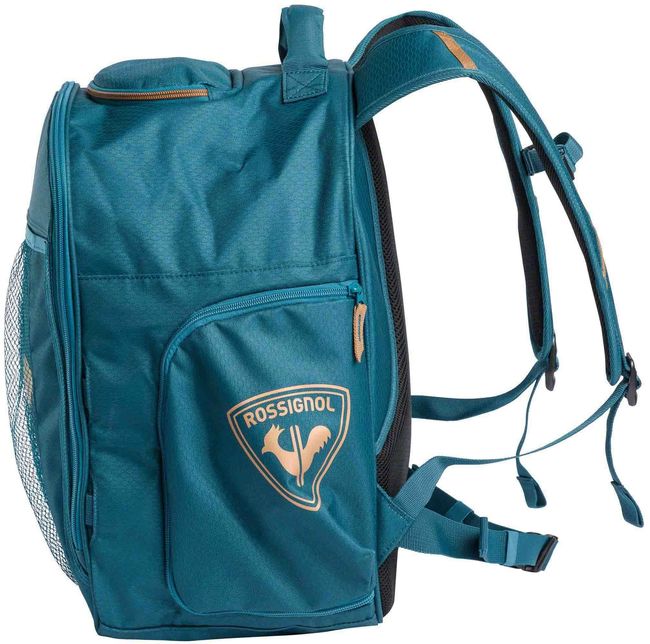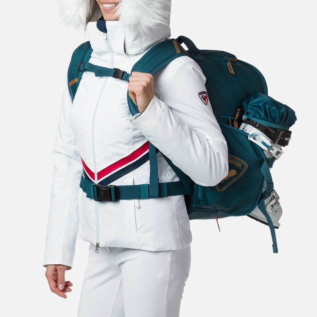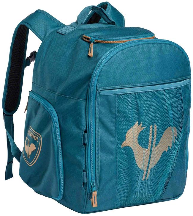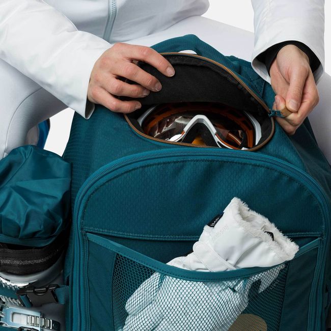 Rossignol Electra Boot and Helmet Pack - великий рюкзак для перевезення ваших черевиків і шолома. Зовні у нього - мішок для зберігання шолома, кріплення для черевиків і кишеньки на блискавці для швидкого доступу до екіпіровки і важливих речей. Усередині ви знайдете відділення для маски / окулярів з обробкою з флісу та невелику потайну кишеню.