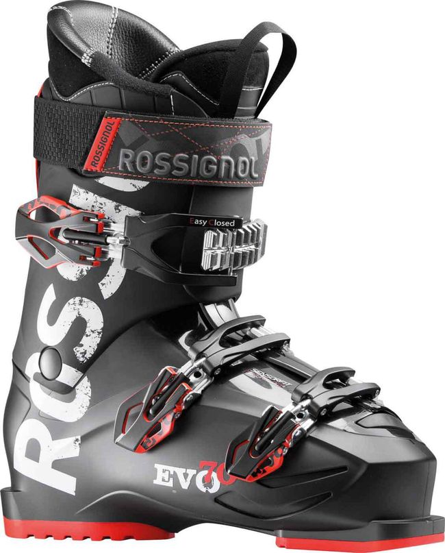 Rossignol Evo 70 - одні з найлегших черевиків з усіх представлених сьогодні на гірськолижному ринку. Забезпечує зручну, широку посадку по нозі, орієнтовані на гірськолижників що набираються досвіду. З широкою колодкою 104 мм черевики добре фіксують ноги.