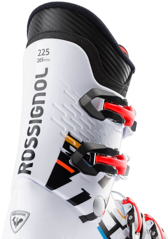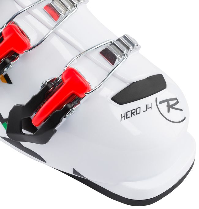 Rossignol Hero J4 - готує дітей для гонок з акцентом на комфорт, продуктивність і теплоту. Конструкція корпусу призначена для вирішення проблемних в області прилягання і пропонує регульовану манжету і застібку з трьома пряжками для хорошої підтримки.