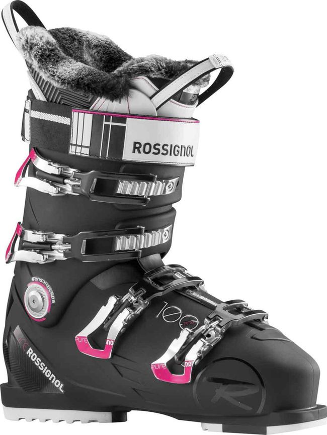 Rossignol Pure Pro 100 абсолютно нова модель черевиків для жінок з оптимізованою конструкцією, забезпечує високоефективну потужність енергопередачі, точність і комфорт для гірськолижниць любительського і експертного рівнів.