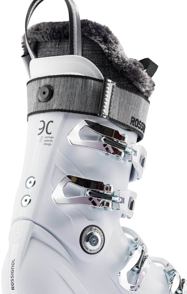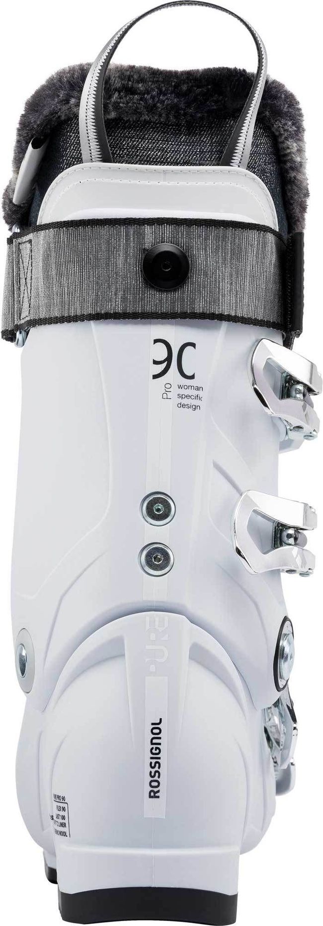 Rossignol Pure Pro 90 жіночі гірськолижні черевики з шириною колодки 100 мм. забезпечують неперевершену потужність, точність і комфорт. Технологія Sensor Blade знижує вагу черевика і направляє енергію безпосередньо на лижі, а можливість регулювання жорсткості дозволяє враховувати потреби кожної гірськолижниці. Внутрішні черевики з технологією OptiSensor з додаванням вовни мериноса забезпечують максимальний комфорт, тепло і підтримку.
