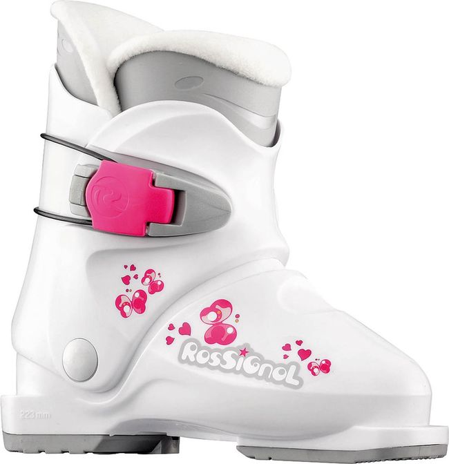 Rossignol R18 - зручний простий у використанні черевик для навчання дітей. Класичні роз'ємні черевики з одного кліпсою забезпечують широке розкриття черевика і відповідно дуже просте надягання і знімання черевика. Завдяки такій простій конструкції батьки можуть одягти дітей на схил швидше. Дуже прості у використанні і зручні черевики для найперших кроків на схилі.