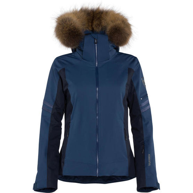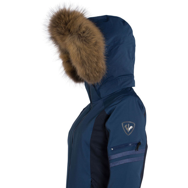 Rossignol W Elite Jacket Dark Denim - це унікальна куртка з вищою кваліфікацією: стрейчева, технічні та висококласна куртка, для лижниць, які шукають технічну функцію та максимальний захист. Це водонепроникна, дихаюча високоякісна куртка включає двошарову мембрану 20 000/20 000, що забезпечує повний захист від поганої погоди та відмінної віддачі вологи. Термічно зварені шви та водонепроникні блискавки роблять цей жакет надзвичайно водонепроникним. Теплоізоляція від Thinsulate, що забезпечує ідеальне поєднання теплоти та комфорту. Оригінальне хутро навколо капюшона, симетричні вишиті смужки на руках та комбінація стретч-тканини для вишуканого вигляду. Ця високотехнологічна технічна куртка ідеально підходить для вимогливих експериментальних гірськолижниць: водонепроникна, дихаюча і тепла з комфортом вільних рухів.