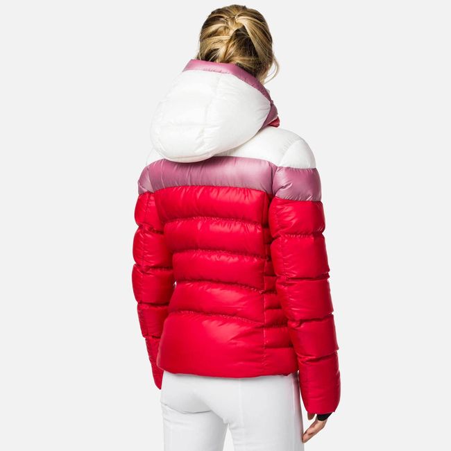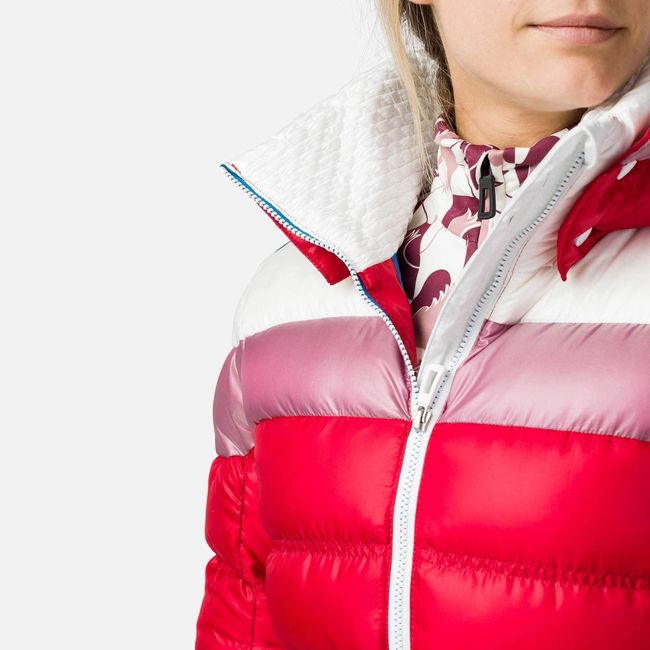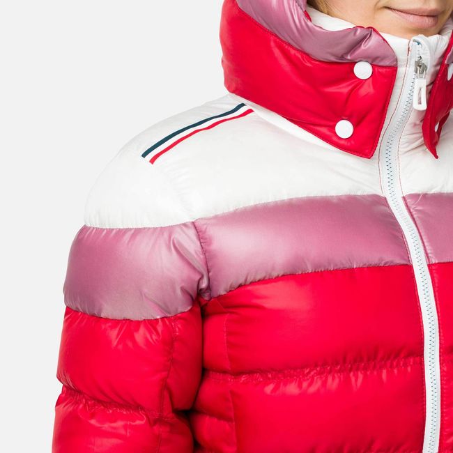 Rossignol W Hiver Down Carmin - Жіноча пухова куртка з колекції Sport Chic Ski несе елегантний технічний дизайн у ваш лижний гардероб. Вишуканий стиль з високим пухом преміум-класу забезпечує неперевершене тепло. Його водонепроникна, дихаюча конструкція включає водонепроникні блискавки, які захищають від вологої погоди, одночасно відводячи вологу, щоб ви не були сухими. Вишуканий стиль відповідає спадщині Росіньйол із триколірними смугами на плечах і блакитною підкладкою, що нагадує основу однойменну легендарну лижну модель. Деталі лижника, такі як манжети на великому пальці та інтегрована спідниця для снігу, допомагають уникнути холоду.