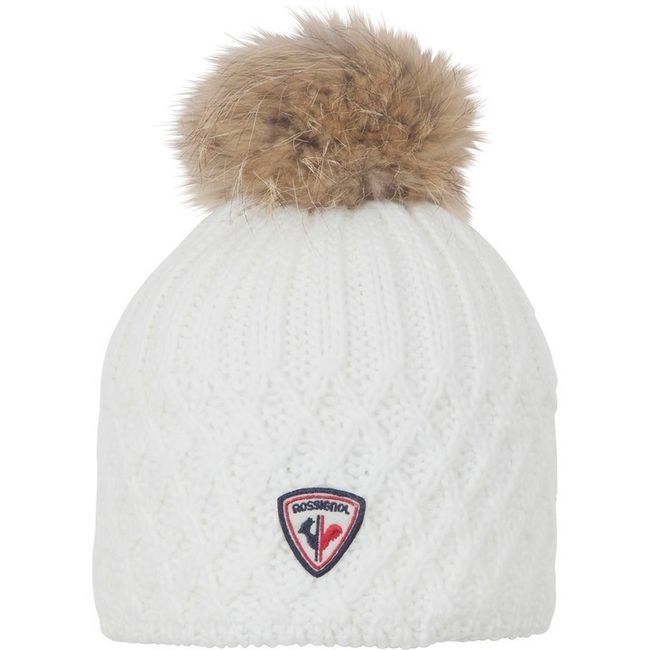 Rossignol W Isy елегантна в'язана жіноча шапочка з помпоном із натурального хутра. Вшитий м'який фліс для тепла і комфорту. Значок Sport Chic