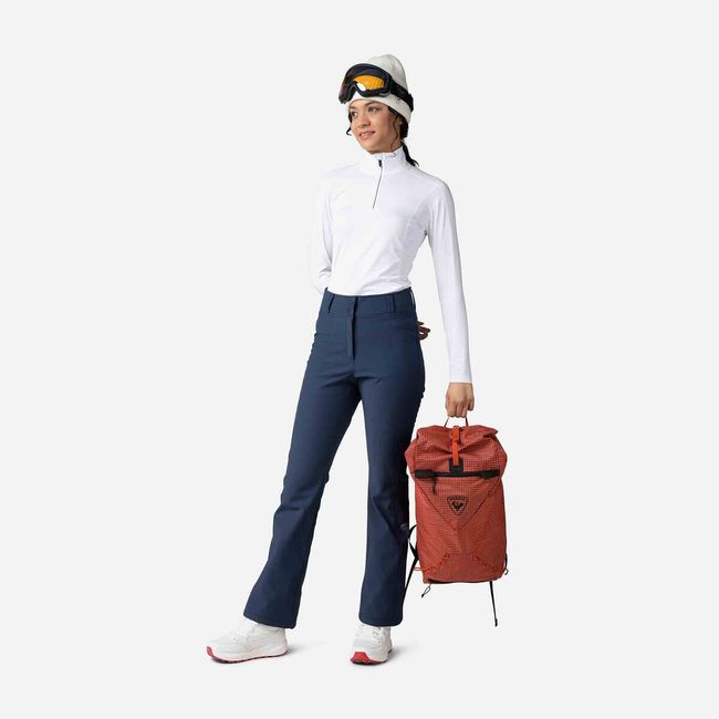 Rossignol W Ski Softshell Pant — Жіночі гірськолижні штани дарують свободу та комфорт для природного руху на будь-якій місцевості. Облягаючий крій облягає ваше тіло від стегон до колін, а потім відкривається, щоб надягати на черевики, створюючи витончений, жіночний силует. Вітрозахисне плетіння еластичне, а легка підкладка з матового флісу забезпечує тепло під час руху.