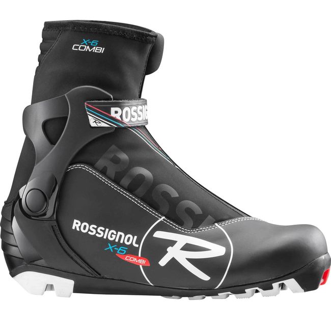 Rossignol X-6 Combi - високоефективні комбіновані черевики для бігових лиж з можливістю катання як коньковим так і класичним стилями. Завдяки новому об'єму ці черевики краще сідають по нозі і є більш комфортними. 3D манжета із застібкою на липучці velcro додають мобільності і контролю черевикам. Система застібки Lock Down, система активної підтримки стопи, термоформуюча внутрішня частина черевиків і ассиметрична система шнурівки роблять черевики максимально комфортними зберігаючи ідеальний контроль.