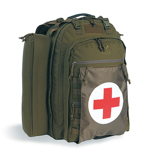 Рюкзак для аптечки першої медичної допомоги. Містке основне відділення з петлями з широкої резини для фіксації вмісту. Ззовні і всередині клапана 11 кишень на блискавці.