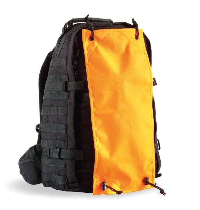 На додаток до цього одна важлива деталь - стропа з кільцем, яка дозволяє оперативно відкрити рюкзак одним рухом. При необхідності стропу можна прибрати всередину. Рюкзак забезпечений м'якою ергономічною спинкою, м'якими плечовими ременями анатомічної форми і знімним поясним ременем з кишенями, який можна від'єднати при необхідності. Також є яскравий навісний маркер для тактичного визначення «свій -чужий» при роботі в парі / команді на дистанції, який забирається в приховану зовнішню кишеню, розташований в нижній частині рюкзака.