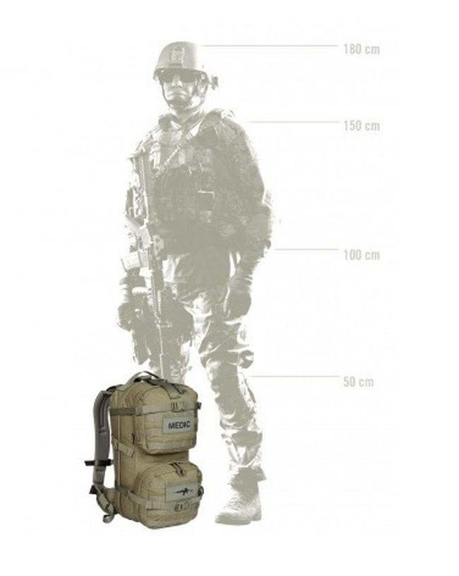 Спеціалізований рюкзак об'ємом 22 літри. R.U.F. (Rescue Under Fire) - (порятунок під вогнем) - рюкзак для невеликої, мобільної аптечки, призначений для надзвичайних ситуацій. Всі деталі рюкзака максимально мобільні і зручні у використанні. Дозволяє компактно і акуратно розмістити необхідний набір медичного спорядження.