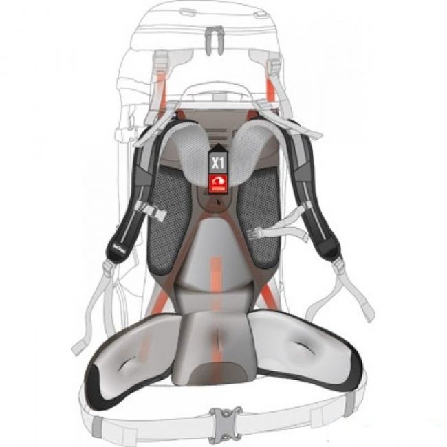 - Х1 - система Hi End класу для перенесення важких вантажів. Система X1 була розроблена спеціально для перенесення важких вантажів. Конструкція системи настільки ж проста, наскільки оригінальна. Система підвіски складається з декількох частин. Дві ергономічно вигнутих пересічних алюмінієві шини, посилені у верхній частині спини посилені фібергласових рамою. Ця конструкція перерозподіляє велику частину навантаження з м'яких плечових ременів на щільний поясний ремінь, що значно знижує навантаження на хребет. Поясний ремінь складається з двох жорстких крил посилених РЕ пластиною і обрезиненою поясною подушкою, яка запобігає зісковзуванню. Над поясним ременем розташовується V-подібна спинка рюкзака з системою регулювання висоти і довжини плечових ременів з вентиляційним каналом.