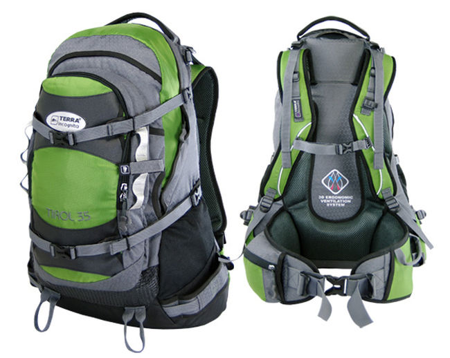 Terra Incognita Tirol 35 Green - Спортивний рюкзак об'ємом 35 літрів, може використовуватися як в літній період, так і взимку. Має об'ємну передню кишеню з органайзером, систему кріплення для сноуборду, лиж і льодового спорядження або лижних палиць.