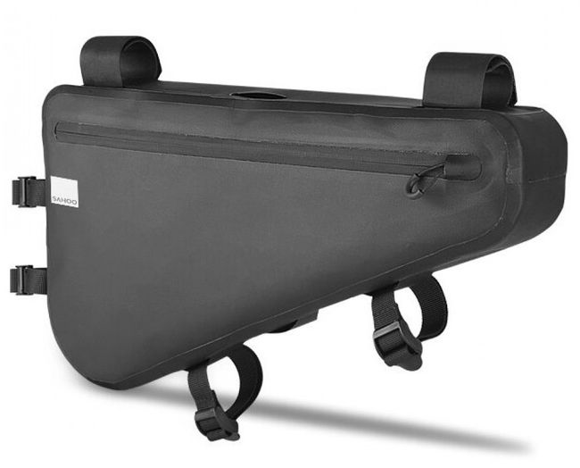 Сумка виготовлена з високоякісних матеріалів, які захищають її від вологи та бруду. Вона кріпиться до рами велосипеда за допомогою спеціальних ремінців, що забезпечує її надійну фіксацію під час їзди.