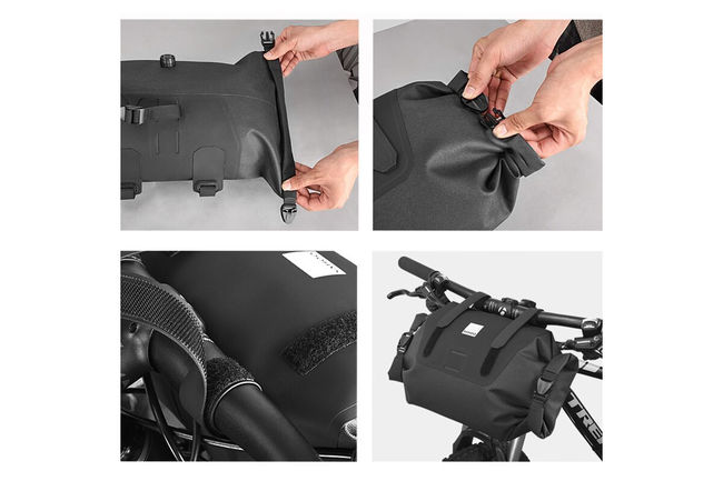 Sahoo Pro 112030 — Зручна повністю вологозахищена велосипедна сумка на кермо. Виготовлена з комбінації матеріалів TPU і Hyplon та не має "блискавок", оскільки закривається загортанням верху, що забезпечує повний захист від води. Стінки пом'якшені поліетиленовою ватою.