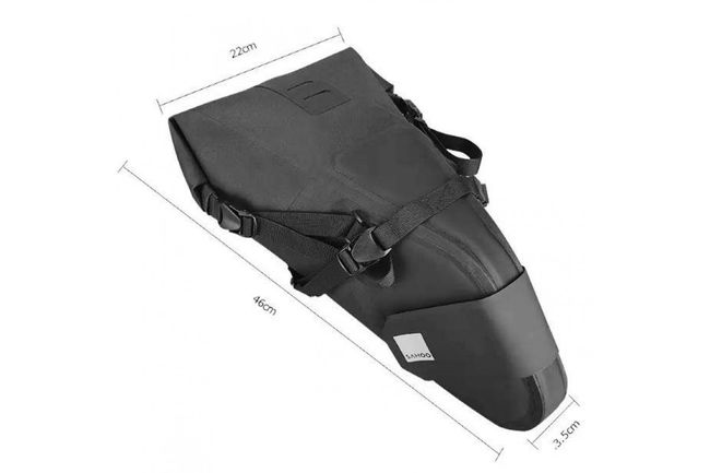 Сумка виготовлена з міцних та водонепроникних матеріалів, що захищає її вміст від вологи та бруду. Вона кріпиться до сідла велосипеда за допомогою спеціальних ремінців, що забезпечує її надійну фіксацію під час їзди.