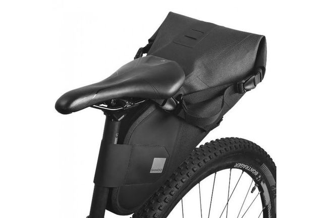 Sahoo Pro 132034 — це велика сумка, яка кріпиться під сідло велосипеда та призначена для зберігання великої кількості речей. Вона має кілька відділень та кишень, що дозволяє зручно розміщувати у ній речі.