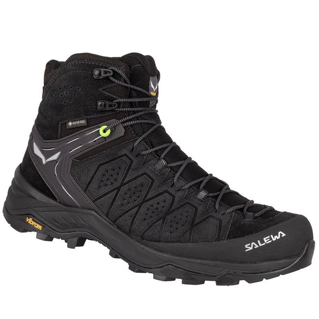 Salewa Alp Trainer 2 Mid GTX Mns — Чоловічі хайкінгові черевики від бренду Salewa. Хороший варіант для одно- чи кількаденних не складних гірських походів. Підошва Vibram гарантує відмінне зчеплення з поверхнею, а мембрана Gore-Tex захищає від вологи й бруду. М'який комірець у зоні щиколотки зменшує навантаження під час спусків та підйомів. Фірмова розбірна устілка MFF+ дає можливість підібрати необхідну ширину, підвищуючи комфорт, добре відводить вологу, завдяки чому ноги залишаються сухими. Глибока шнурівка дозволяє підігнати черевики під особливості стопи, а прогумований носок захищає від каміння і гілок. Чудовий варіант для трекінгу Карпатами або пригодницьких мандрів.