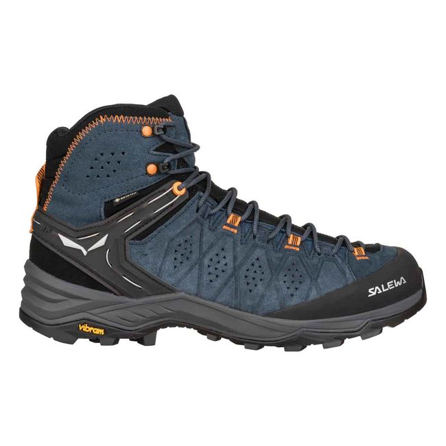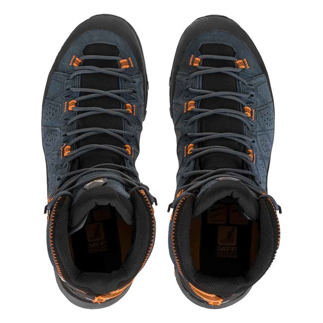 Salewa Alp Trainer 2 Mid GTX Mns — Чоловічі хайкінгові черевики від бренду Salewa. Хороший варіант для одно- чи кількаденних не складних гірських походів. Підошва Vibram гарантує відмінне зчеплення з поверхнею, а мембрана Gore-Tex захищає від вологи й бруду. М'який комірець у зоні щиколотки зменшує навантаження під час спусків та підйомів. Фірмова розбірна устілка MFF+ дає можливість підібрати необхідну ширину, підвищуючи комфорт, добре відводить вологу, завдяки чому ноги залишаються сухими. Глибока шнурівка дозволяє підігнати черевики під особливості стопи, а прогумований носок захищає від каміння і гілок. Чудовий варіант для трекінгу Карпатами або пригодницьких мандрів.