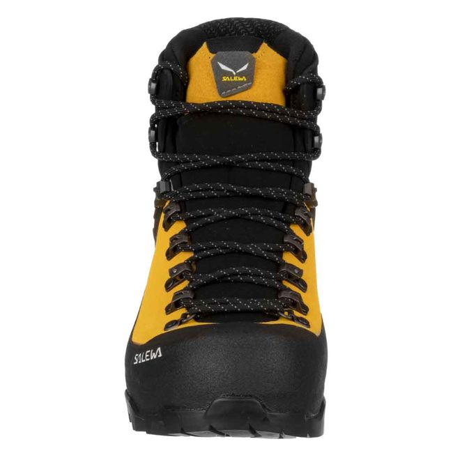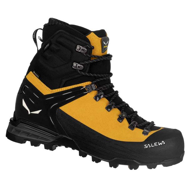 Salewa Ortles Ascent Mid GTX Mns — Чоловічі альпіністичні черевики із товстої замшевої шкіри. Дихаюча мембрана Gore-Tex Insulated Comfort відводить вологу та забезпечує чудові повітропроникні властивості взуття, а вбудовані еластичні гетри запобігають потраплянню снігу всередину.