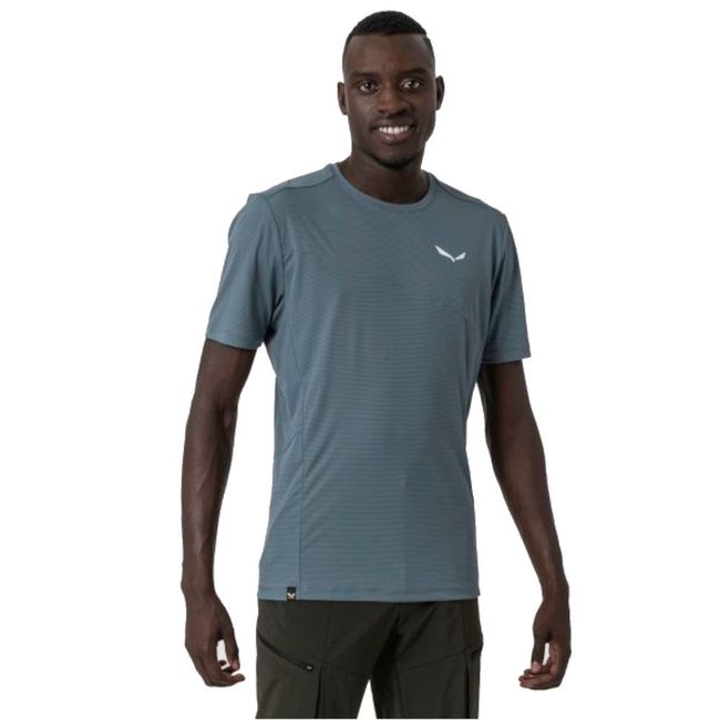 Salewa Puez Sporty DRY Mns — Легка чоловіча футболка для літніх походів та інших активностей на природі. Виготовлена з матеріалу, що на 83% складається з переробленого поліестеру. Завдяки швидковисихаючій тканині, що тягнеться в 4 напрямках, вона забезпечує комфорт та швидко відводять вологу від шкіри, підтримуючи клімат-контроль вашого тіла. Крім того, вона має спеціальне просочення, що перешкоджає швидкому утворенню неприємного запаху.